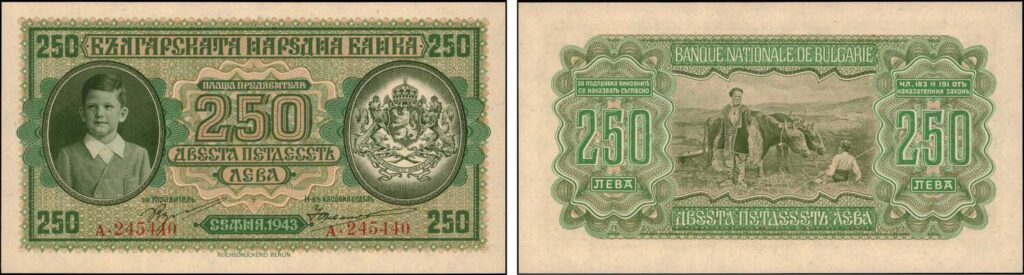 Прави впечателние, че лицевата им страна най-сетне е променена. Цар Борис III Сакскобургготски е починал и тогава за първи и последен път в Българската история, там стои едно дете, 6 годишният престолонаследник Симеон.